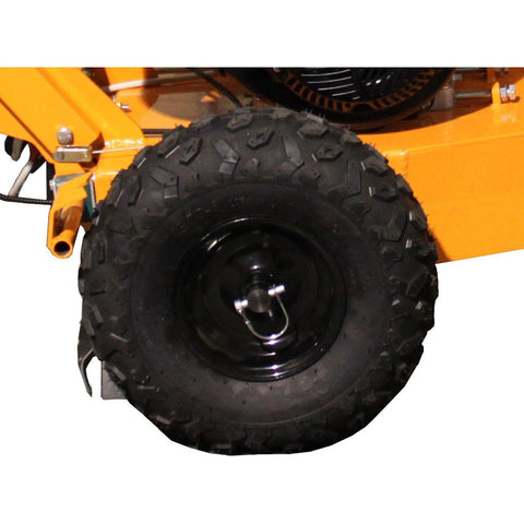 The Power King Self Propelled Stump Grinder, equipped with a robust Kohler Command Pro CH440 engine, epitomizes efficiency and convenience in stump removal. This 14HP powerhouse not only features an extra set of teeth for extended cutting life and minimized downtime but also boasts a self-propelled mechanism, enhancing maneuverability and reducing physical strain on the operator. Its dual braking system provides precise control over each tire, further improving safety and agility. The unit comes with a tow bar for effortless transportation, an electric start for reliable and quick operation, an All Weather Cover to protect against the elements, and compatibility with GreenTeeth 500 Series LoPro for peak performance. An Hour Meter tracks usage for timely maintenance, making this grinder a go-to solution for both professionals and homeowners seeking a powerful, efficient, and user-friendly tool for tackling stump removal challenges.